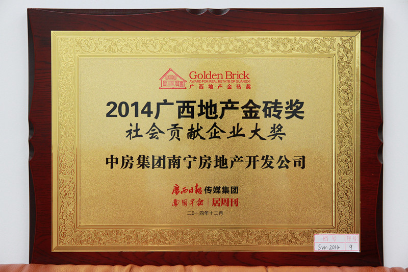 • 2014廣西地產(chǎn)金磚獎社會貢獻(xiàn)企業(yè)大獎