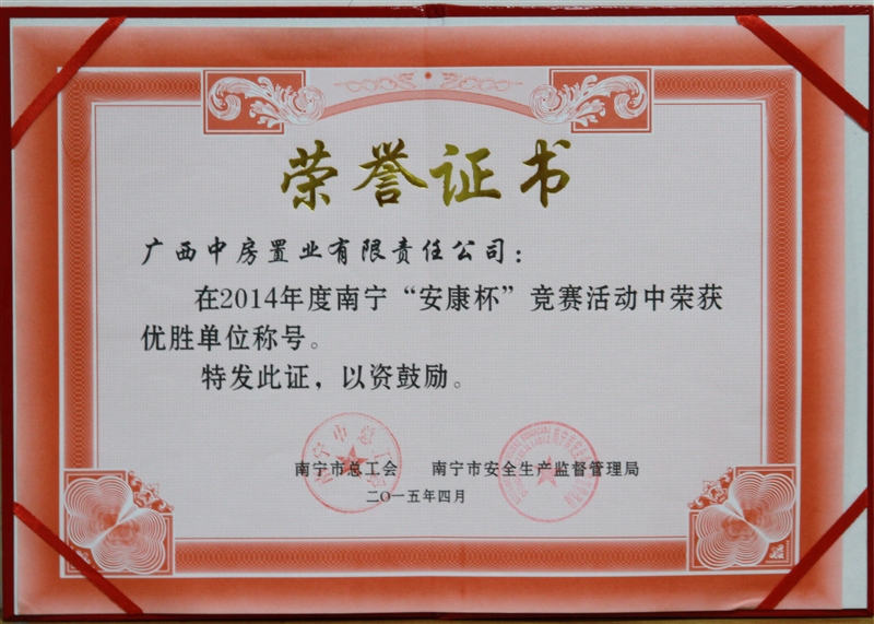 • 中房•新天地榮獲“2015年度南寧市城市物業(yè)管理優(yōu)秀住宅小區(qū)”稱號