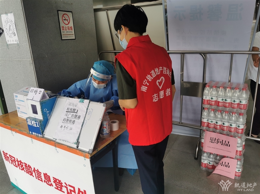 為迎接黨的二十大勝利召開,進(jìn)一步弘揚(yáng)“學(xué)習(xí)雷鋒、奉獻(xiàn)他人、提升自己”的志愿者精神,2022年9月23日,軌道地產(chǎn)咨詢公司團(tuán)支部組織公司黨員代表、團(tuán)員代表,積極參與南寧市新冠肺炎疫情防控指揮部志愿服務(wù)組發(fā)起的“服務(wù)兩會送清涼”公益慰問活動,在南寧青秀區(qū)鳳嶺北警務(wù)站、鳳嶺北客運(yùn)站核酸檢測點(diǎn)開展“公益慰問行,喜迎二十大”志愿服務(wù)活動。