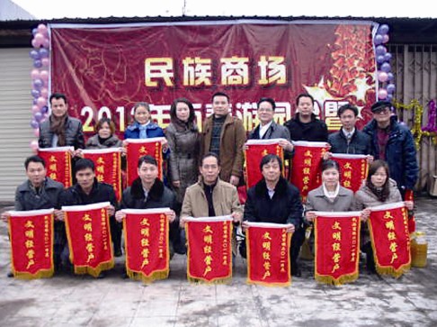 2012年1月6日下午,商場(chǎng)五樓天面人聲鼎沸、喜氣洋洋,商場(chǎng)全體員工與商場(chǎng)幾百名經(jīng)營(yíng)戶歡聚一起,成功舉辦了商場(chǎng)2012年度迎春游園會(huì)暨2011年度文明經(jīng)營(yíng)戶表彰大會(huì),楊錦清、鄧振芬等15名商場(chǎng)文明經(jīng)營(yíng)戶獲得了表彰。