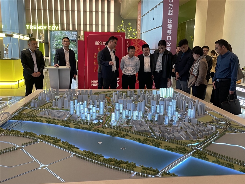 2023年2月2日下午,南寧軌道交通集團(tuán)黨委書記、董事長黃鐘暉,黨委副書記、總經(jīng)理譚文舉,黨委委員、軌道地產(chǎn)公司黨委書記、董事長張世高,軌道地產(chǎn)公司總經(jīng)理?xiàng)铌上?、黨委副書記、副總經(jīng)理睢濤一行蒞臨五一中路片區(qū)站城一體化綜合改造項(xiàng)目一期——南寧未來城市項(xiàng)目實(shí)地參觀,在華潤置地華南大區(qū)廣西片區(qū)公司總經(jīng)理遲海等人陪同下走進(jìn)南寧未來城市項(xiàng)目,參觀了周家坡地鐵公園、5300畝TOD國際生態(tài)新城展覽館、未來城市項(xiàng)目沙盤和樣板間。黃鐘暉對未來城市項(xiàng)目發(fā)揮“百日百戰(zhàn)”的攻堅(jiān)精神、拿地135天逆勢開盤的開發(fā)效率、及連續(xù)三個(gè)月蟬聯(lián)南寧市銷售冠軍的良好成績給予了高度評價(jià),對全體工作人員所做的工作和付出給予了充分肯定,黃鐘暉指出,要將該片區(qū)構(gòu)建成為南寧市TOD綜合智慧社區(qū)的城市更新范本,努力將項(xiàng)目打造成為高質(zhì)量出行、高品質(zhì)生活和高價(jià)值區(qū)域的全國“軌道+城市更新”標(biāo)桿。一同參觀人員均表示非常期待該項(xiàng)目能為江南區(qū)帶來更高端、更美好的生活方式,同時(shí)也要讓更多的南寧市民了解更加美好的生活、更加融洽的鄰里關(guān)系、更加舒適的人居環(huán)境的“軌道+”模式。